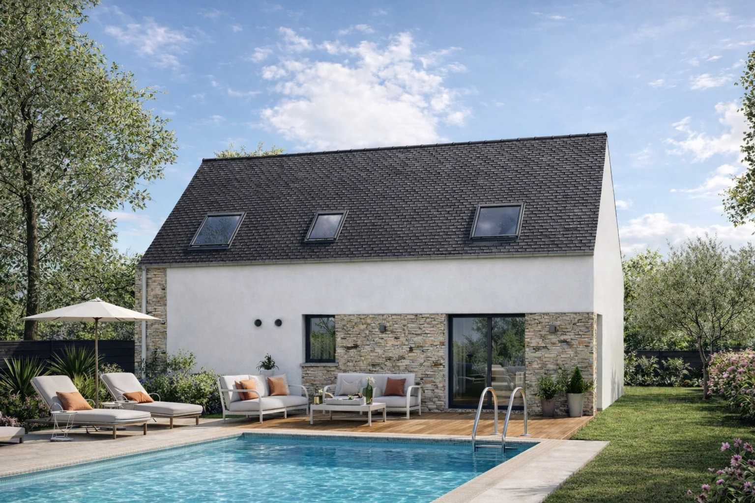 Construction conforme à la norme RE 2020 seuil 2025, assurant performance énergétique et respect de l’environnement.