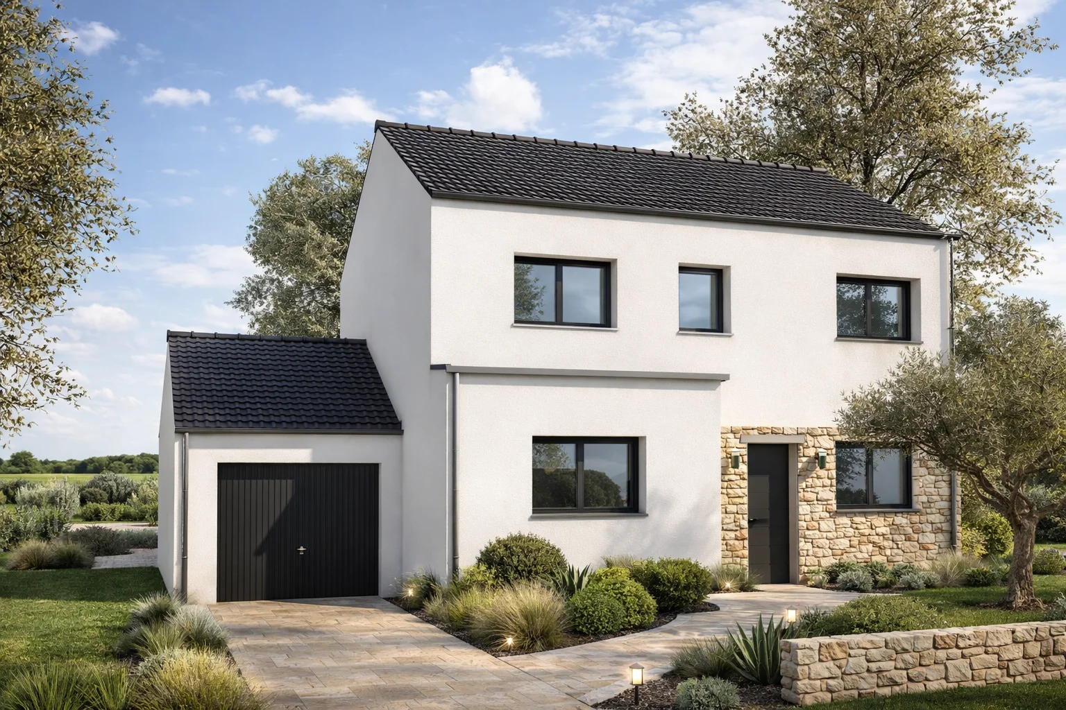 Construction conforme à la norme RE 2020 seuil 2025, assurant performance énergétique et respect de l’environnement.