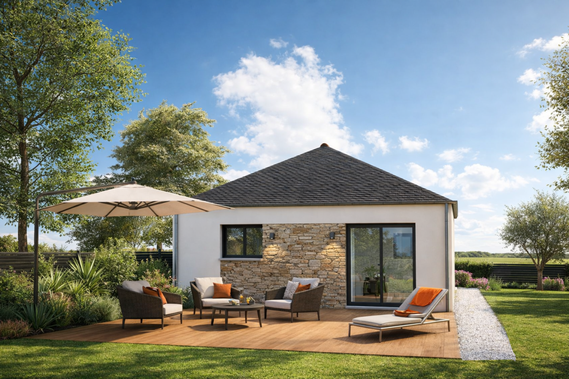 La maison plain pied AXCES 08 V2 offre une conception optimisée sur 47 m² habitables (52 m² utiles). Cette maison plain pied est idéale pour une personne seule ou un couple en quête d’un espace fonctionnel et agréable à vivre.