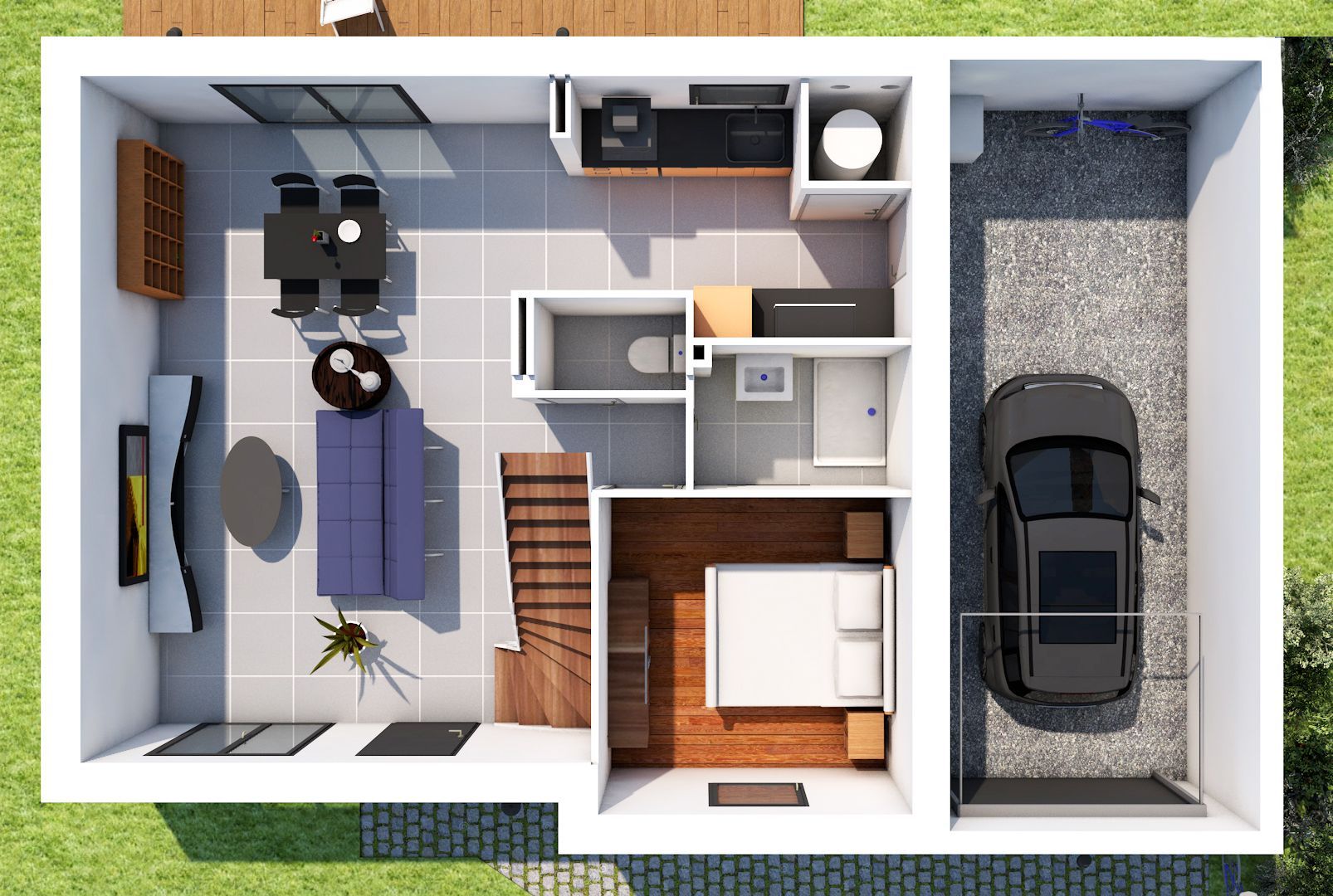 -Garage intégré avec accès direct à la maison