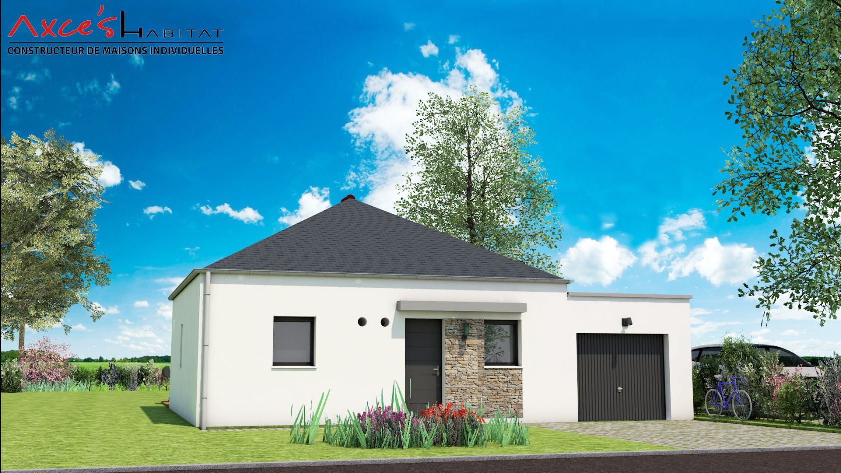 Prix incluant terrain, maison, hors frais de notaire, hors frais annexes et hors adaptation terrain. Hors aménagements intérieurs et extérieurs. Terrain sélectionné et vu pour vous sous réserve de disponibilité et au prix indiqué par notre partenaire foncier. Conditions et visuels non contractuels.