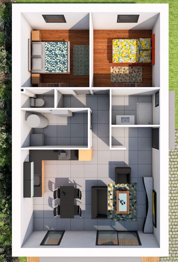 Cette maison de 63 m², optimisée et fonctionnelle, offre un espace de vie chaleureux avec cuisine américaine ouverte, un cellier pratique et deux chambres confortables (avec possibilité d’aménagement de placards), tout en laissant la possibilité de créer une troisième chambre ou d’ajouter un garage selon vos besoins.