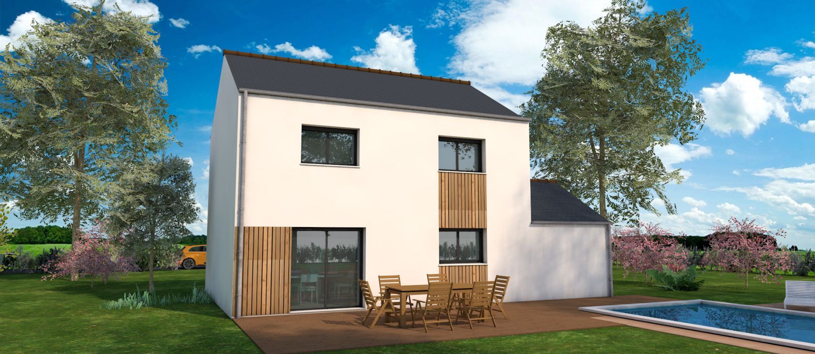Prix incluant terrain, maison, hors frais de notaire, hors frais annexes et hors adaptation terrain. Hors aménagements intérieurs et extérieurs. Terrain sélectionné et vu pour vous sous réserve de disponibilité et au prix indiqué par notre partenaire foncier. Conditions et visuels non contractuels.