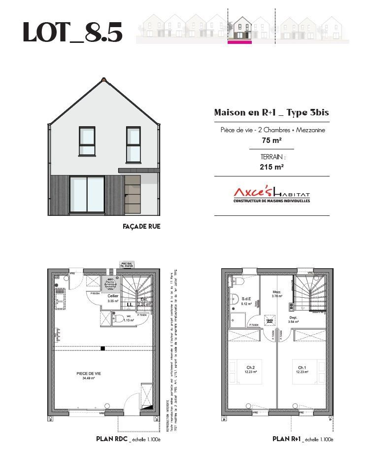 Imaginez… votre maison clé en main, prête à vous accueillir Imaginez vos soirées d’été dans un jardin déjà engazonné, vos repas en terrasse protégés par une clôture élégante, et cette sensation unique d’ouvrir la porte de votre maison neuve, pensée jusque dans les moindres détails. Ici, tout a été conçu pour vous simplifier la vie : le terrain, la construction, les frais liés à l’acquisition, et même les aménagements extérieurs. Aucun imprévu, aucun supplément caché : c’est un véritable projet clé en main. Un intérieur chaleureux et fonctionnel Au rez-de-chaussée, la pièce de vie de 35 m² baignée de lumière devient le cœur de la maison. Sa cuisine ouverte invite à la convivialité, tandis que l’arrière-cuisine vous offre une organisation optimale au quotidien. À l’étage, vous retrouvez le confort de deux chambres lumineuses et une mezzanine ouverte, parfaite pour un espace de travail inspirant ou un coin lecture paisible.