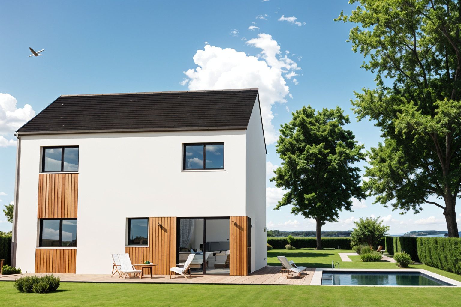 Livrée avec le gros œuvre terminé – murs, toiture, menuiseries extérieures posées –, elle est parfaitement étanche à l’air et à l’eau, et prête à accueillir vos travaux d’aménagement intérieur selon vos goûts et votre budget.