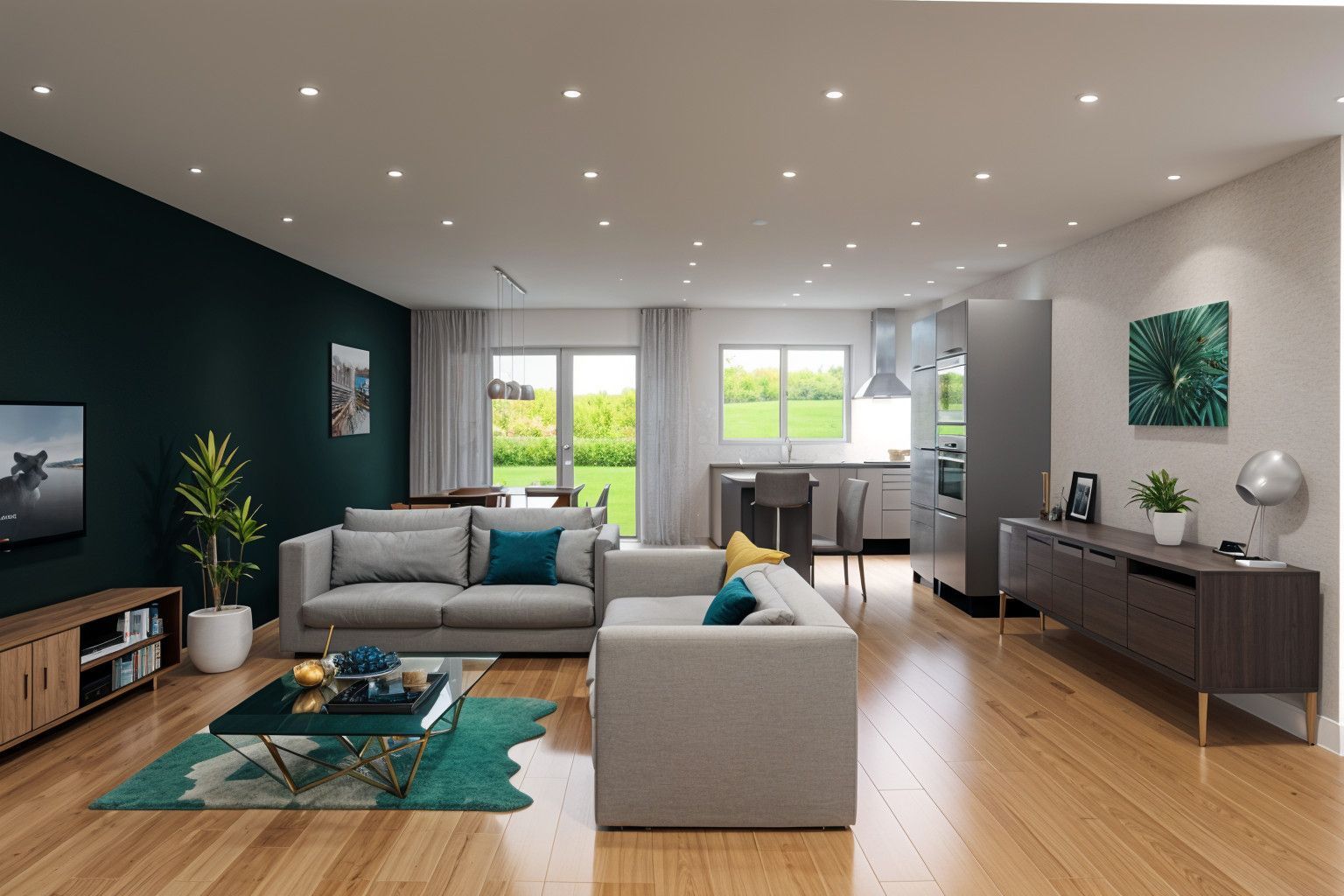 Prix incluant terrain, maison, hors frais de notaire, hors frais annexes et hors adaptation terrain. Hors aménagements intérieurs et extérieurs. Terrain sélectionné et vu pour vous sous réserve de disponibilité et au prix indiqué par notre partenaire foncier. Conditions et visuels non contractuels.