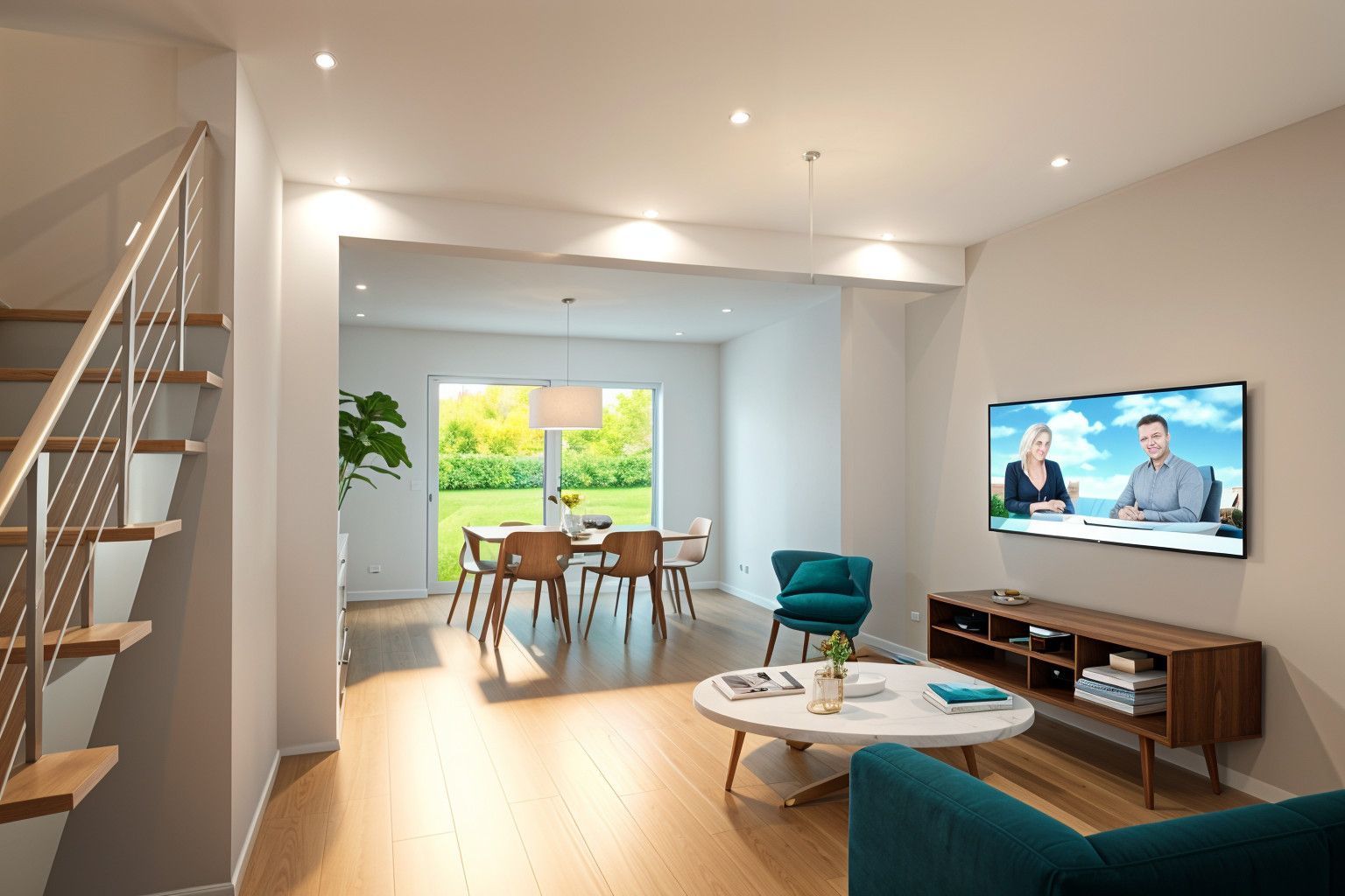 Le rez-de-chaussée propose une grande pièce de vie traversante avec cuisine ouverte, profitant d’une triple exposition pour un maximum de lumière naturelle. Toilettes séparées et garage attenant complètent ce niveau fonctionnel et agréable.