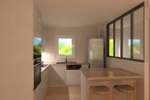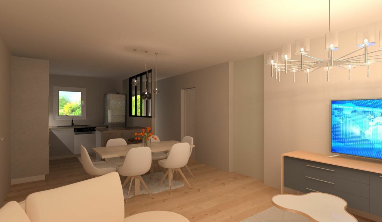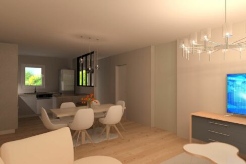 Axce’s Habitat vous propose ce plain-pied confortable, conforme aux dernières normes énergétiques qui vous séduira par son spacieux salon/séjour lumineux de 32m² donnant sur une cuisine ouverte. Il comprend deux chambres confortables ainsi qu’une salle de bain avec toilettes indépendantes. Un garage accolé offre un accès direct à la cuisine pour plus de praticité.